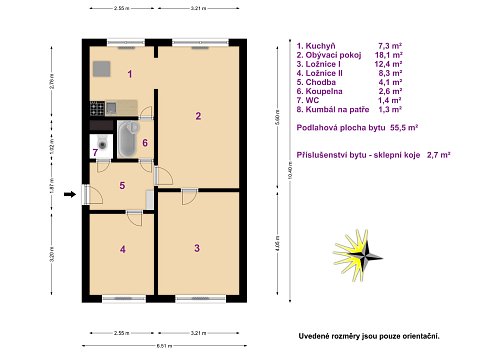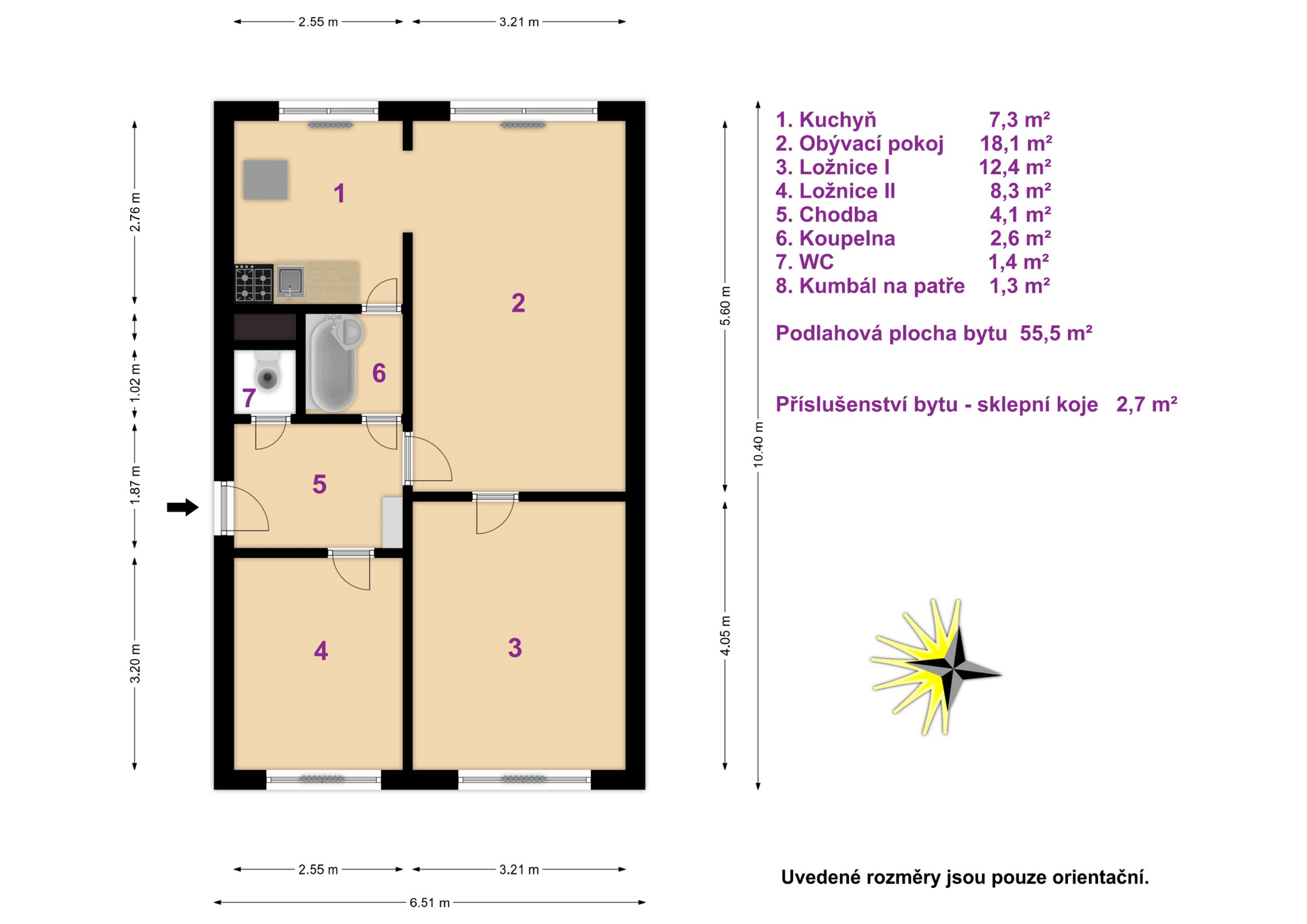 K bytu patří komora na patře a sklep o výměře 2,7 m²; v domě je dostupný vysokorychlostní internet až 2 Gb/s od Vodafonu. Pro inspiraci jsem kromě půdorysu do přiložené fotodokumentace zařadil i několik zdařilých vizualizací.